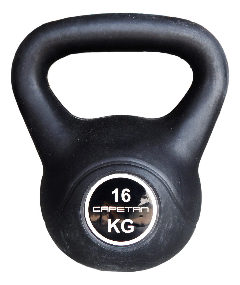 Capetan® 16 kg Kettlebell aus Kunststoff - Kugelhantel mit Zement Füllung, mit Kunststoff Überzug. Dank des äußeren Überzugs wird der Boden mehr geschont als die Produkte aus Metall. Sie ist langlebig aber der Lebensdauer ist kürzer als der der Kugelhantel aus Metall. Kettlebells aus Kunststoff sind gewöhnlich größer als die aus Metall. Das vielerlei benannte Fitness-Gerät ist in schwarzer Farbe erhältlich. Sie ist für aerob und anaerob Leistugseffekte beim Workout geeignet. Während des Trainings mit Kettlebell werden permanente Koordination, Konzentration, und schwere Kraftaufwand gefördert. Gekräftigt werden die folgenden Muskel-Ketten: Schultern, Rücken, Tiefenmuskulatur, Hüftmuskulatur, Bauchmuskulatur.