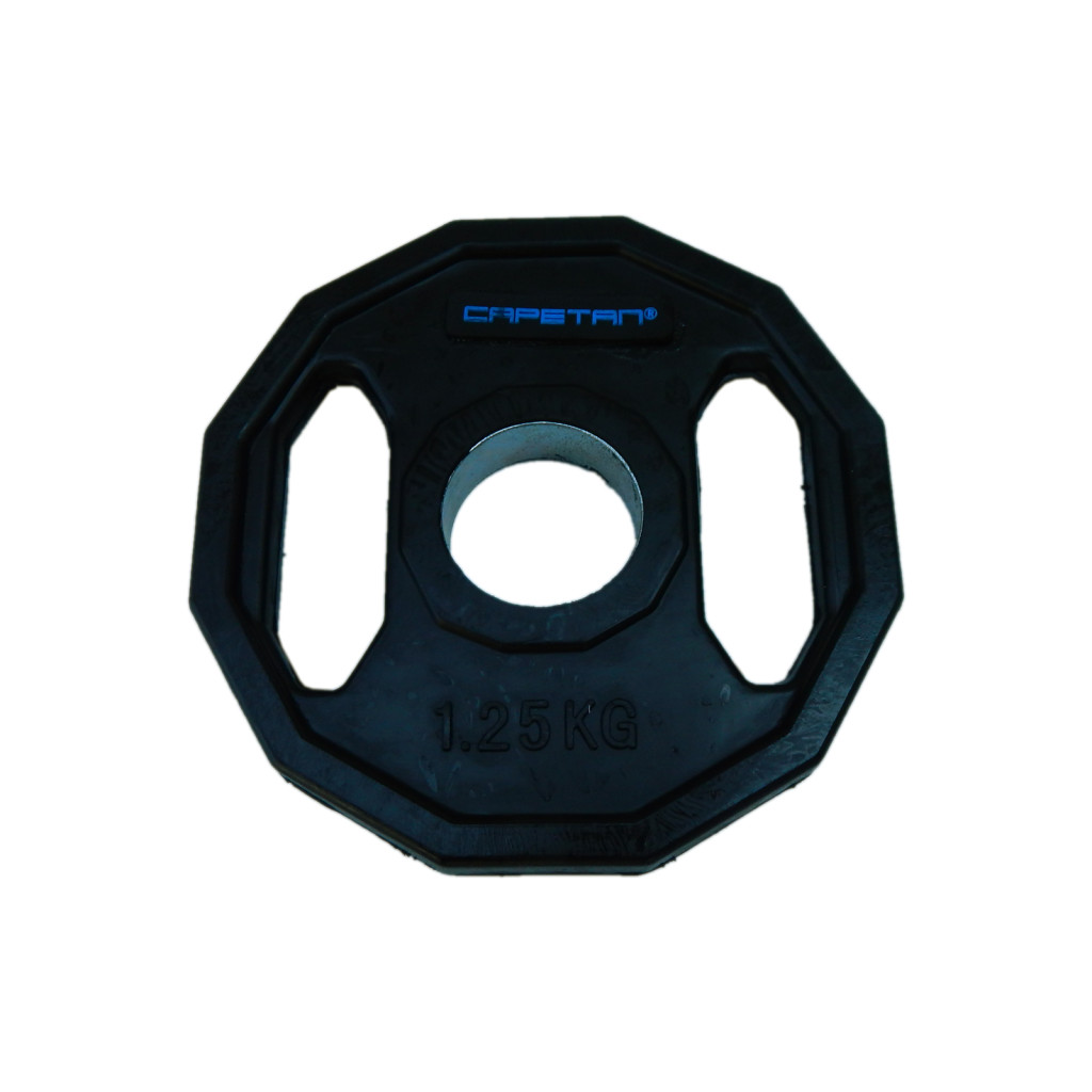 Capetan® 1,25 kg gummiüberzogene Olympiascheibe, zwei Griffen, mit eckigem rollhemmendem Rand, mit 51 mm Lochdurchmesser – gummierte Hantelscheibe