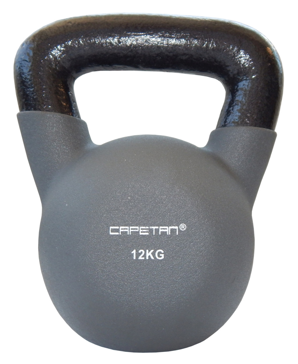 Capetan® 12 kg Kugelhantel mit Neoprenüberzug – Kugelgewicht mit waagerechtem Handgriff: Das mit zahllosen Namen bezeichnete Sportgerät ist in der Farbe schwarz erhältlich. Es ist dafür geeignet, sowohl eine aerobe als auch eine anaerobe Wirkung während des Trainings auszuüben. Man braucht durchgehende Koordination, mentale Konzentration und starke Muskelanstrengung, um die Trainings mit Kugelhantel durchzuführen. Die Kugelhantel ist für die Bearbeitung folgender Muskeln geeignet: die Muskeln in den Schultern, in der Taille, im Bauch, und die tiefen Muskeln im Rücken. Die mit Neopren überzogene Kugelhantel hat ein komfortableres Tasten als eine traditionelle Glockenhantel aus Metall: es ist angenehmer für die angerührten Teile des Handgelenks und Unterarms während der Übungen. Darüber hinaus macht die Kugelhantel mit Neoprenüberzug kleineres Geräusch beim Auf-den-Boden-Legen, auch die anrührende Oberfläche bleibt besser verschont. Wichtig: Die Neoprenhantel springt beim Niedersetzen auf dem Boden nicht davon weg in irgendwelche Richtungen, wie die traditionellen Stahlhanteln plus Gummiunterlage. (Die Gummiunterlage ist dick, federnd und passt nicht völlig zum Unterteil der Kugelhantel, so kann die Gewichtkugel in eine unvorhergesehene Richtung davonspringen, was gefährlich und auch unangenehm ist.) Der Neoprenüberzug erfüllt dieselbe Schutzrolle für den Fußboden daneben, dass er für die anrührenden Hände auch angenehmer ist, da die ganze Kugelhantel überzogen ist. Deshalb ist die mit Neopren überzogene Glockenhantel das professionellere Produkt für solche Benutzer, die diese Aspekte beim Kaufen in Acht nehmen.