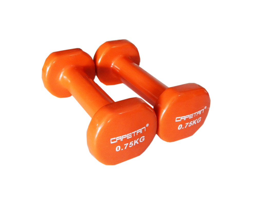 Capetan® 2x0,75 kg ein Paar mit weichem Vinyl umhüllte Einhandhanteln aus Stahl (2 Stck.): Dank der Vinylumhüllung der Hanteln ist ihre Oberfläche weicher als Stahl, und aufgrund der Deckschicht aus Kunststoff sind sie hygienischer als die Neoprenhanteln. Ihre Reinigung ist ganz leicht, sie sind mit feuchtem Wischtuch abwaschbar. Durch ihre Verwendung kann man das Hanteltraining oder aerobe Stunden abwechslungsreicher machen. Sie sind für Verwendung zu Hause sowie im Fitnessraum empfohlen. Das Gerät dient zur Oberkörper- und Armmuskelstärkung.