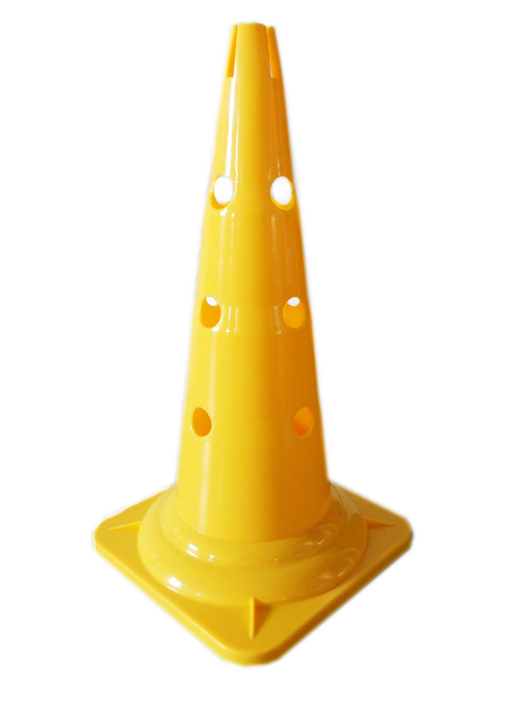Capetan® 50 cm hohes gelbes Markierungshütchen mit Einkerbungen für Stangen an der Spitze, mit 12 Löchern an der Seite