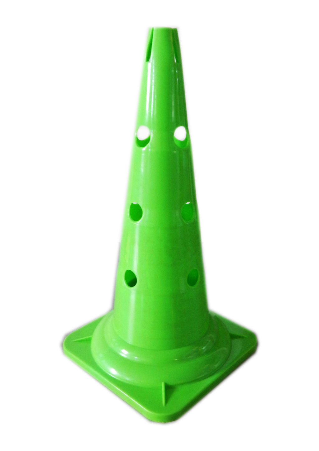 Capetan® 50 cm hohes grünes Markierungshütchen mit Einkerbungen für Stangen an der Spitze, mit 12 Löchern an der Seite