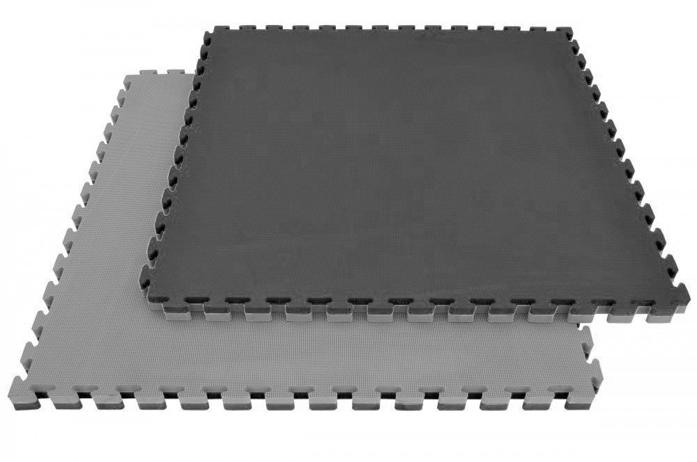 Capetan® Floor Line 100x100x2,5 cm grau-schwarze Puzzle-Tatamimatte: Die Puzzle-Matte ist heutzutage ein unerlässliches Utensil der modernen multifunktionalen Gymnastikräume. Das Produkt ist mit einer Dicke von 2,5 cm bzw. von 4 cm verfügbar, was für die Ausübung irgendwelcher Sportaktivitäten geeignet ist. Sie können einen Ihrer Räume schnell und bequem zum Schauplatz moderner Kampfsportarten oder Relaxationsaktivitäten umwandeln. Der Puzzle-Tatamiboden ist eine angemessene Wahl zur Kampfsportaktivität, aber er sichert eine ausgezeichnete Unterfläche auch während Yoga oder am Boden ausführbaren Dehnübungen. Eigenschaften der Puzzle-Sportmatte: - äußerst dauerhaft und leicht - Er ist schnell auszulegen und auseinanderzunehmen, die Ablegung von 100 m2 beansprucht kaum 20 Minuten. - Dank den stabilen Puzzleanpassungen kann er sogar für intensive Trainings angewandt werden - Seine zweifarbige Oberfläche ermöglicht auch die Auslegung von Mustern, man kann wohl auch Spiel- oder Kampffelder daraus formen - Ausgangsmaterial: das Kunststoff Ethylen-Vinylacetat-Copolymer (EVAC Schaum), feuchtigkeitsabstoßend Anders ist die Puzzle-Tatami noch Kampfsportmatte oder Sportmatte genannt. Diese Sportmatte/Sporttatami gehört zu den modernsten Sportbelägen, schimmelt nicht, ist völlig wasserfest, ist leicht zu reinigen. Ihre Speicherung ist sehr einfach, denn die Stücke können auseinandergelegt aufeinander gestapelt werden und so raumsparend aufbewahrt werden. Die "Zähne" der Kampfsportmatten garantieren, dass die Oberfläche des Sportbodens während einem intensiven Training vereint bleibt, und – im Gegenteil zu den traditionellen Tatamimatten – nicht einmal ohne Verstrebung auseinandergleitet. Ihre Oberfläche ist mit "Reiskorn"-Muster geprägt für Erhöhung der Rutschfestigkeit. Der Preis bezieht sich auf 1 Stck. 100x100x2,5 cm Tatamiteil.
