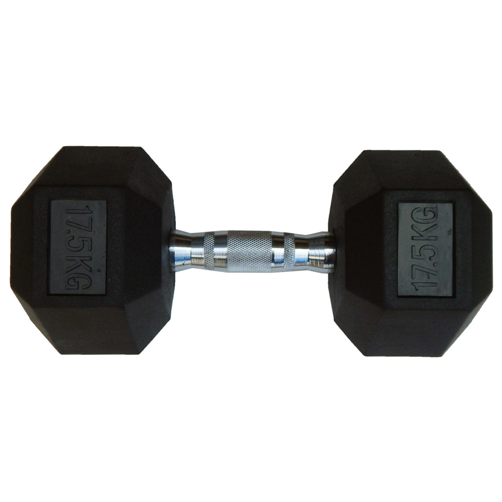 Capetan® Professional Line 17,5 kg HEX Einhand-kurzhantel für Fitnessraum mit gummierten Köpfen und verchromtem Griff – gummierte Hexagonhantel