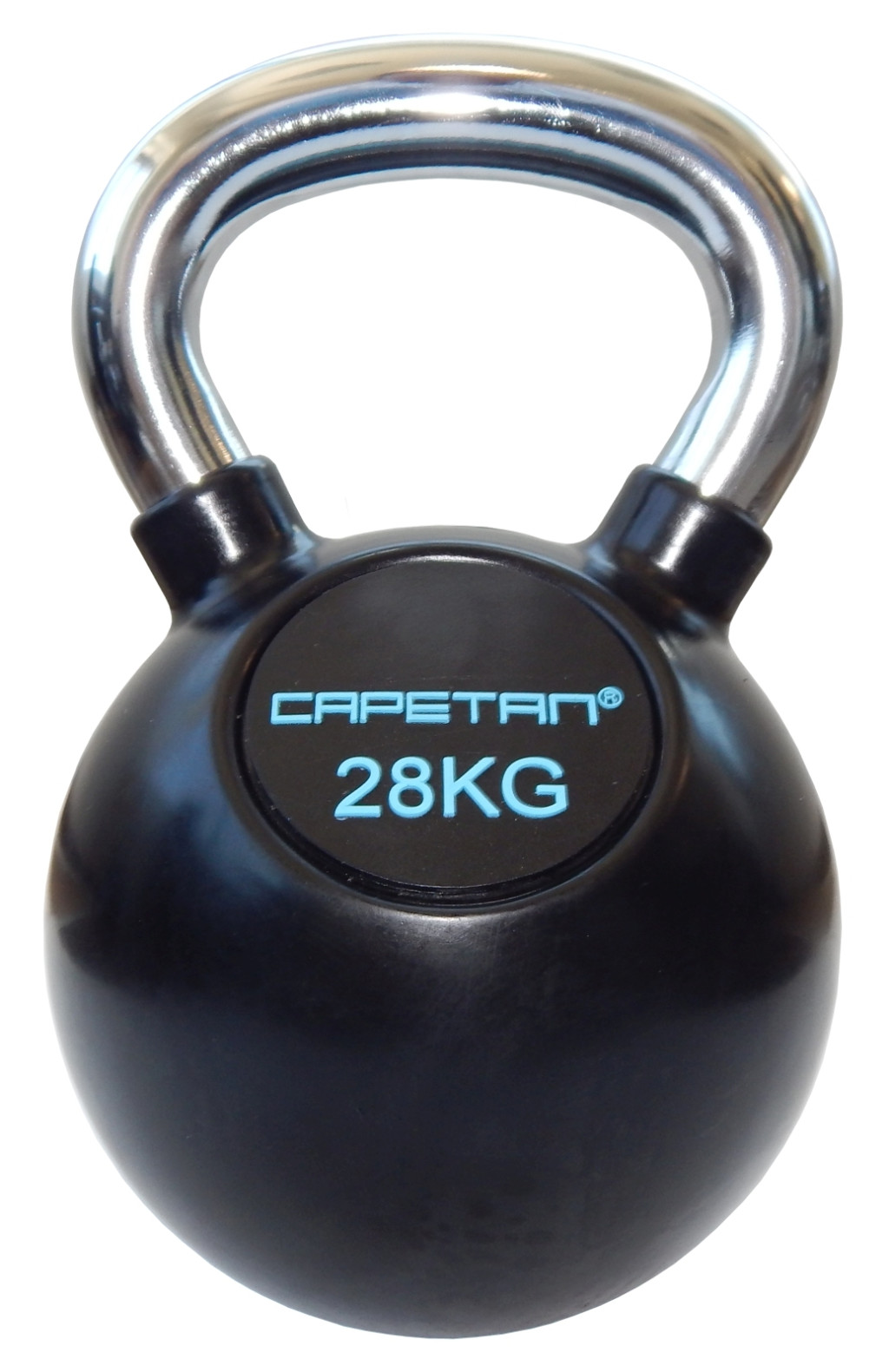 Capetan® Professional Line 28 kg gummiumhüllte Kugelhantel aus Stahl mit verchromtem Griffteil: Das mit zahllosen Namen bezeichnete Sportgerät ist in der Farbe schwarz erhältlich. Es ist dafür geeignet, sowohl eine aerobe als auch eine anaerobe Wirkung während des Trainings auszuüben. Man braucht durchgehende Koordination, mentale Konzentration und starke Muskelanstrengung, um die Trainings mit Kugelhantel durchzuführen. Die Kugelhantel ist für die Bearbeitung folgender Muskeln geeignet: die Muskeln in den Schultern, in der Taille, im Bauch, und die tiefen Muskeln im Rücken. Die mit Gummi überzogene Kugelhantel hat ein komfortableres Tasten als eine traditionelle Glockenhantel aus Metall: es ist angenehmer für die angerührten Teile des Handgelenks und Unterarms während der Übungen. Darüber hinaus macht die Kugelhantel mit Kautschuküberzug kleineres Geräusch beim Auf-den-Boden-Legen, auch die anrührende Oberfläche bleibt besser verschont. Der verchromte Handgriff ist völlig glatt, er hat keine Rauheiten und keinerlei Unebenheiten der Oberfläche; komfortabel verwendbar. Wichtig: Die gummiumhüllte Kugelhantel springt beim Niedersetzen auf dem Boden nicht davon weg in irgendwelche Richtungen, wie eine traditionelle Stahlhantel mit nachträglich angeschraubter Gummiunterlage. (Die Gummiunterlage ist dick, federnd und passt nicht völlig zum Unterteil der Kugelhantel, so kann die Gewichtkugel in eine unvorhergesehene Richtung davonspringen, was gefährlich und auch unangenehm ist.) Der die Kugelhantel völlig einhüllende angegossene Gummiüberzug erfüllt dieselbe Schutzrolle für den Fußboden daneben, dass er für die anrührenden Hände auch angenehmer ist, da die ganze Kugelhantel überzogen ist. Deshalb ist die Ausführung mit Chromgriff und gummiumhülltem Gewichtsteil das professionellere Produkt für solche Benutzer, die diese Aspekte beim Kaufen in Acht nehmen.