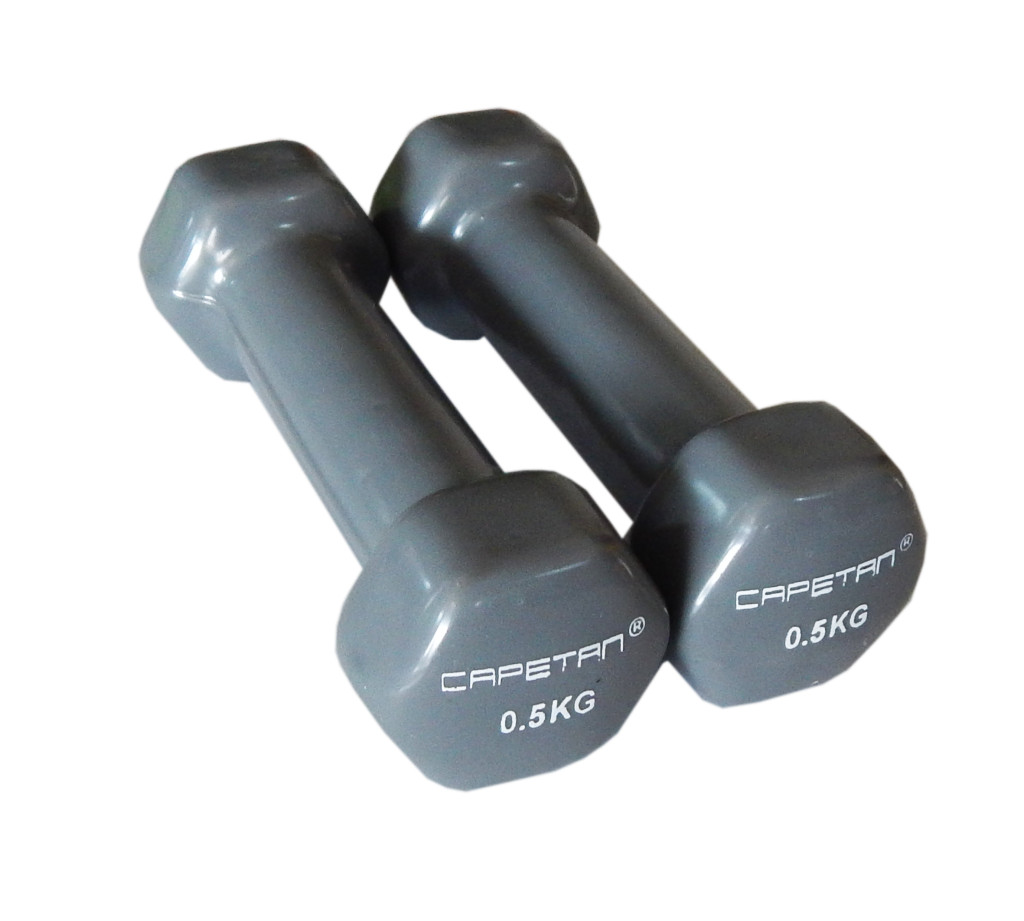 Capetan® Professional Line 2x0,5 kg ein Paar mit weichem Vinyl umhüllte Einhandhanteln aus Stahl: Die Kopfform der Hexagonhanteln ist sechseckig – sie rollen nicht weg, wenn sie auf den Boden gelegt werden. Die Hanteln gehören zur Professional Line Produktfamilie für Fitnessräume, sie sind für die Verwendung in Körperschaften zu empfehlen. Dank der Vinylumhüllung der Hanteln ist ihre Oberfläche weicher als Stahl, und aufgrund der Deckschicht aus Kunststoff sind sie hygienischer als die Neoprenhanteln. Ihre Reinigung ist ganz leicht, sie sind mit feuchtem Wischtuch abwaschbar. Durch ihre Verwendung kann man das Hanteltraining oder aerobe Stunden abwechslungsreicher machen. Sie sind für Verwendung zu Hause sowie im Fitnessraum empfohlen. Das Gerät dient zur Oberkörper- und Armmuskelstärkung.