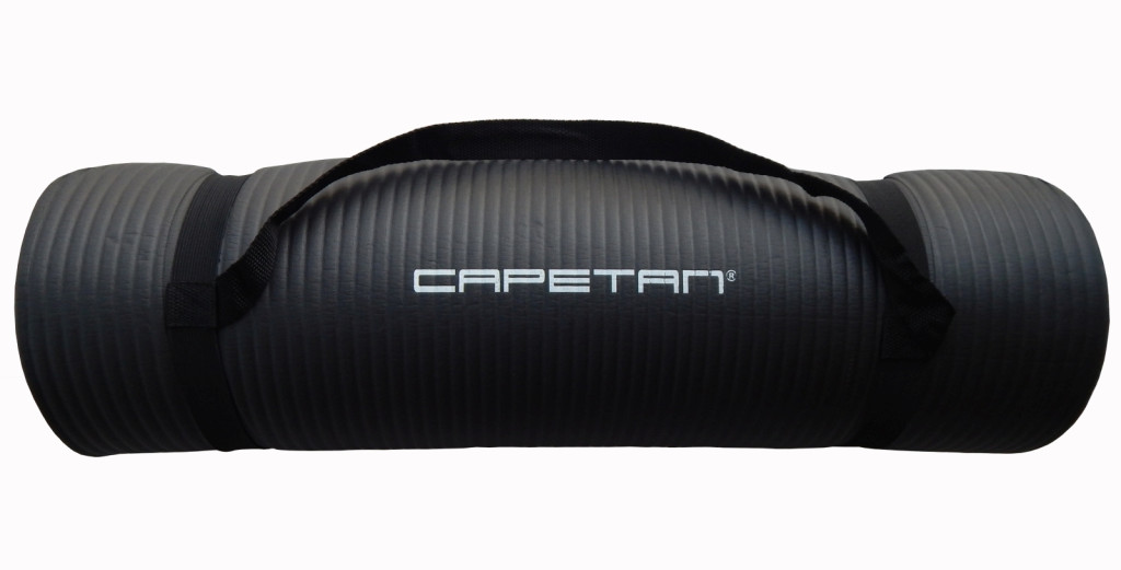 Capetan® Professional Line NBR Fitnessmatte mit Aufhängern in der Größe 179x59x0,8 cm, in schwarzer Farbe – mit elastischem Tragegurt: Matte für Fitness- und Gymnastikräume mit extra hoher Stoffdichte (90 kg/m³). Federnde, weiche Schaummatte mit Wellenoberfläche, die auf dem Boden nicht gleitet; sie ist für Verwendung im Fitnessraum ausgezeichnet geeignet. Zwecks der einfachen Speicherung hat diese Ausführung Aufhängeringe. Größe: 179x59x0,8 cm. Gewicht: 1 kg. Sie ist wasserdicht, mit wärmeisolierendem Charakter und hautfreundlichem Material, haftet zum Körper nicht; auch zu Relaxationsübungen empfohlen. Professionale Gymmatte, die eine perfekte Wahl für institutionale sowie Heimverwendung ist. Die Farbe ist schwarz; sie ist bewährt, beliebt in Fitnessräumen. Aus einem Schaum großer Massivität gefertigte, massige Fitnessmatte mit reinigbarer, abwischbarer Oberfläche. Hochgradig dichter Schaum mit hoher Widerstandsfähigkeit, für Verwendung im Fitraum. Einzigartige Weiche und Federung. Ebene/geriffelte Oberfläche, gerundete Ecken. Der elastische Tragegurt gehört auch zur Turnmatte.