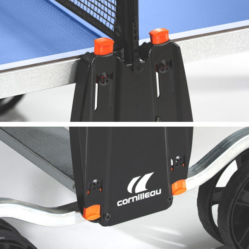 Cornilleau Outdoor Tischtennisplatte Crossover 100, blau, rutschsichere, höhenverstellbare Füße zum Ausgleich von Unebenheiten, Alleintraining möglich