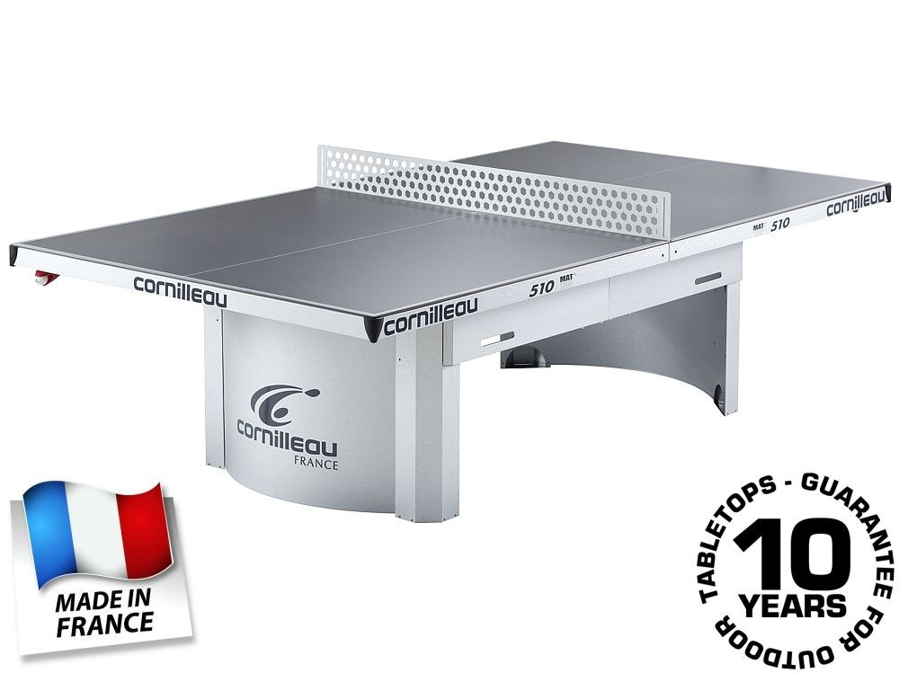 Cornilleau Pro 510 Mat Top Tischtennisplatte ist ein wetterfester TT-Tisch für eine intensive Nutzung in Schulen, Freizeiteinrichtungen und Freibädern. Grau