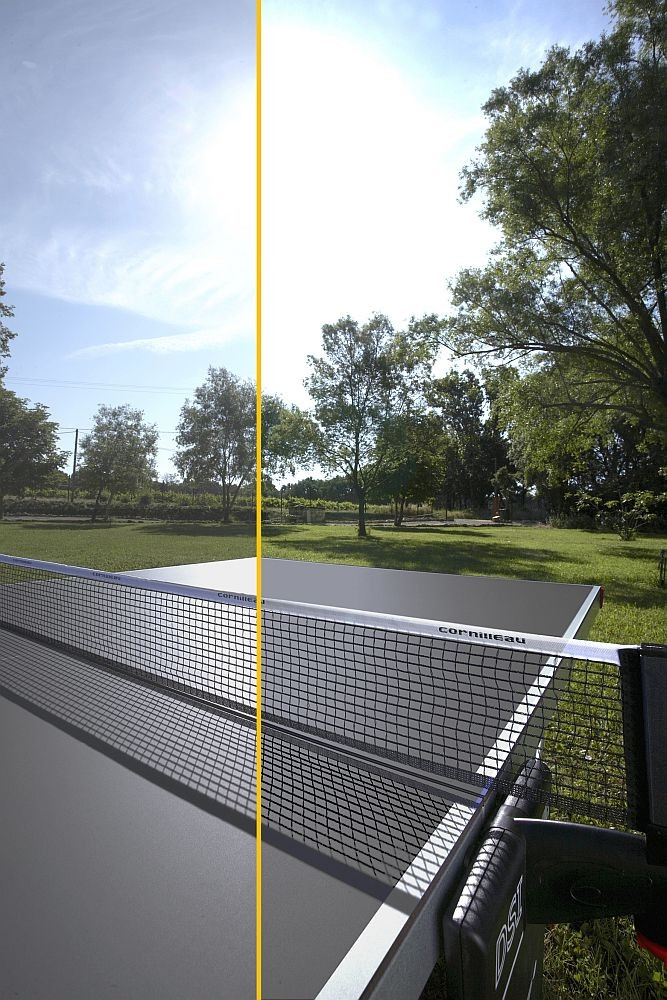 Die Cornilleau Tischtennisplatte „PRO 510 Outdoor“ ist ein wetterfester TT-Tisch für eine intensive Nutzung in Schulen, Freizeiteinrichtungen und Freibädern. Farbe: GrauIdeal für Schulen, Jugend- und Freizeiteinrichtungen und mehr. Kann das ganze Jahr dauerhaft im Freien stehenUntergestell aus feuerverzinktem StahlblechMit Mattop-Beschichtung für blendfreies Spiel10 Jahre Garantie auf die SpielflächeDie Cornilleau Tischtennisplatte „PRO 510 Outdoor“: Äußerst robust und langlebig. Wichtig: Nicht vandalsicherDie wetterfeste Tischtennisplatte „PRO 510 Outdoor“ von Cornilleau bietet Ihnen einen dauerhaften Einsatz im Außenbereich. Ob für Schulen, Vereine, Campingplätze und Co.: Der Tischtennistisch ist für höchste Ansprüche konzipiert. Die 7 mm starke Platte aus Melamin verfügt über eine spezielle Mattop-Beschichtung. Diese reflektiert 10x weniger Sonnenstrahlen als herkömmliche Platten und macht das Spiel bei strahlendem Sonnenschein zum absoluten Vergnügen. Mit seinem festen Untergestell und ohne Klappmechanismus sorgt die robuste Cornilleau Tischtennisplatte für die nötige Standfestigkeit. In der Lieferung enthalten ist ein bereits fest montiertes Stahlnetz.Maße und Gewicht:Internationales Turniermaß (LxBxH): 274x152,5x76 cmGewicht: 77 kgProduktdetails:7 mm starke Melaminplatte (wetterfest und widerstandsfähig)Mit Mattop-Beschichtung60 mm breitem ProfilrahmenGebogenes Stahlgestell: 56/200x45 mmBleibende weiße MarkierungslinienMit Fixierungslöchern zur festen Montage am BodenInkl. fest montiertem Stahlnetz10 Jahre Garantie auf die Spielfläche