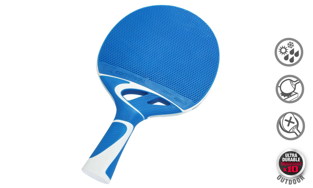Cornilleau Tacteo 30 Schoolsport Tischtennisschläger aus Kompositstoff. Ein wasserfestes Modell für Schule und Vereine. Das Aussehen der Kompositschläger ist das Ergebnis einer Kooperation zwischen den Firmen Cornilleau und Michelin. Er ist eine einzelständige Schlägerart auf dem Markt und widersteht allen Wetterumständen. Der Schläger ist ein unerlässliches Zubehör der Outdoor-Tischtennisplatten. Die Kompositschläger können die Spielfläche dank ihrer weichen Beschichtung nicht beschädigen. Das Modell T30 ist ein Stück der Anfäger-Serie der Outdoor-Schläger, das ein angenehmes Spielerlebnis bietet.