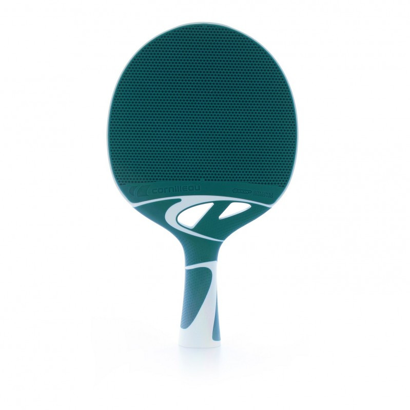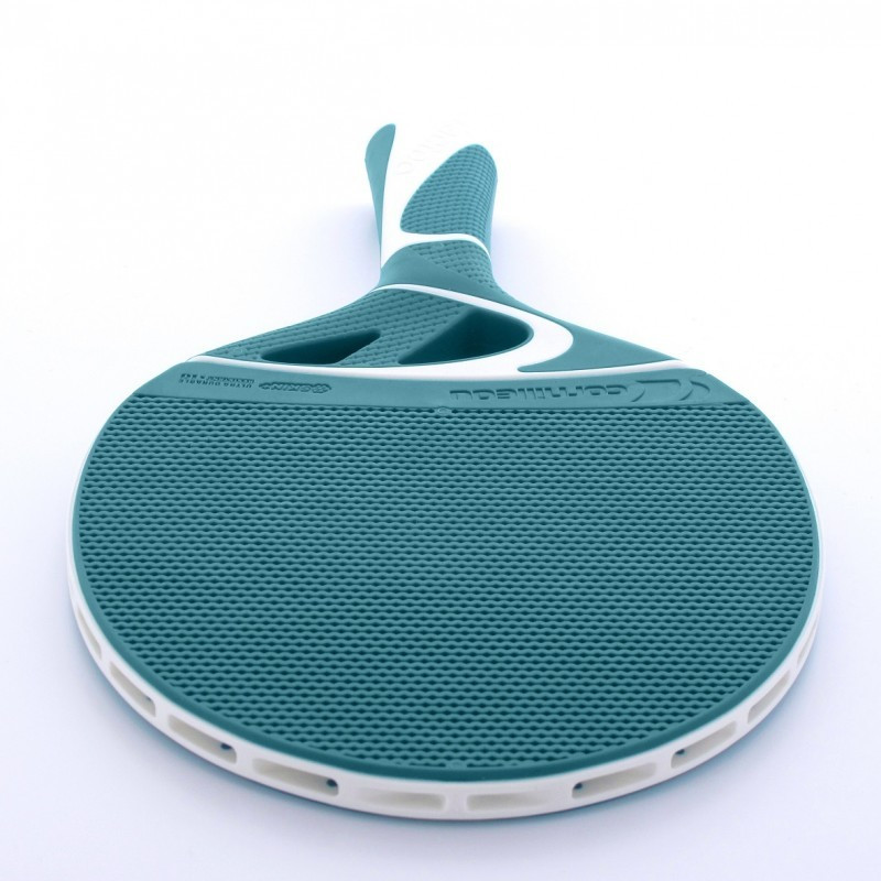 Tacteo Composite Duo Pack Tischtennisschläger, für Außenraum, wetterfest. Die Produkte wurden von Michelin entwickelt; Das Schlägerpaar ist für Schule und Vereine geeignet, festes, langlebiges Modell, ausgeführt aus einem homogenen, gummierten Stoff, benutzbar sowohl fü Indoor-Tische als auch für Outdoor-Tische. Bei Outdoor-Tischen verbessert das Spielerlebnis die gummierte Oberfläche. Der Pack besteht aus zwei Schlägern von hohen Qualität und dazu gehört noch 3 Bälle. Die Kompositschläger sind völlig wasserfest, ihre Oberfläche sind weich, sie werden nicht einmal bei einem Tischanschlag geschädigt. Produkterten: Speed: 8, Spin: 7, Kontrolle: 7.