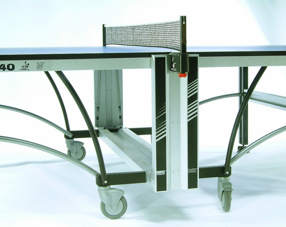 Die Cornilleau Tischtennisplatte „Competition 640“ ist ein robuster Wettspieltisch mit ITTF -Zulassung. Gleichzeitig überzeugt der Tisch mit perfektem Ballabsprung und Langlebigkeit.Ideal für die dauerhafte Nutzung bei Wettkämpfen oder bei eleganten Clubs. Dieser Wettkampftisch wurde mit Mitwirkung der Weltmeister und Olympiker Jean Philippe Gatien Tischtennisspieler gefertigt.Nach EN 14468-1, Klasse A gefertigtMit patentiertem KlappmechanismusFür einen besonders schnellen Auf- und AbbauInkl. ITTF -zugelassenem WettkampfnetzDie Cornilleau Tischtennisplatte „Competition 640“: Der treue WettkampfbegleiterDie Cornilleau Tischtennisplatte „Competition 640“ eignet sich als hervorragender Begleiter beim TT-Turnier. Der Tisch garantiert Ihnen einen optimalen Ballabsprung und eine hohe Langlebigkeit. Zusätzlich erfolgt der Auf- und Abbau äußerst schnell und einfach. Durch die praktische Höhenverstellung passen Sie den Tischtennistisch individuell an Ihre Bedürfnisse an. Nach dem Tischtennis-Spiel sorgt der patentierte Klappmechanismus für ein platzsparendes Verstauen der Platte. Maße und Gewicht:Internationales (LxBxH): 274x152,5x76 cmAbstellmaße (LxBxH): 184x158x65 cmGewicht: 110 kgProduktdetails:22 mm starke Spanplatte mit Spezial-BeschichtungSehr robustes UntergestellMit patentiertem KlappmechanismusSchneller Auf- und AbbauHöhenverstellungInkl. ITTF -zugelassener Wettkampf-Netzgarnitur