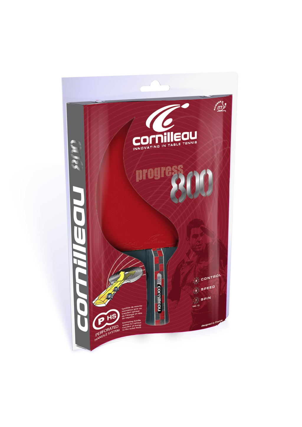 Cornilleau Tischtennisschläger Progress 800 für Fortgeschrittene, Speed: 8, Spin: 8, Kontrolle: 7, Schaumstärke: 2.1 mm, Holz: 6 mm, Beschichtung: ITTF 5 Sterne, Griff: anatomish gefertigt