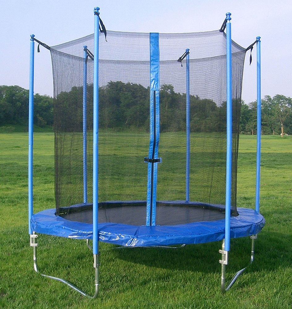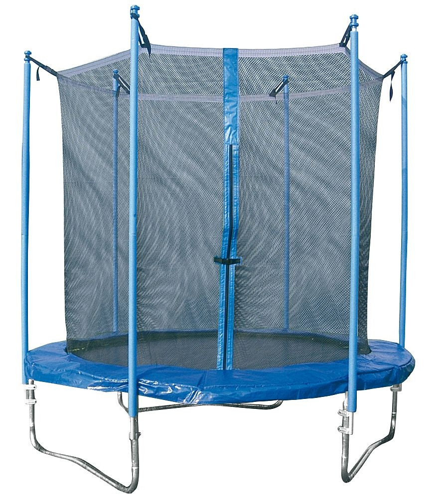 Garlando Combi S 183 cm Durchm. Trampolin mit Sicherheitsnetz – wetterfestes Trampolinset: Das Trampolinset ist ein Produkt, das auch den strengsten internationalen Vorschriften entspricht. Das Trampolin entspricht der internationalen normativen Regelung EN 71, und darüber hinaus verfügt es über die von deutscher technischen Prüforganisation ausgestellte Übereinstimmungsbescheinigung TÜV GS. Die Federn des Trampolins sind aus korrosionsbeständigem Material hergestellt und haben eine galvanisierte Oberfläche. Technische Daten – Garlando Trampolin mit Sicherheitsnetz und 183 cm Durchmesser: Galvanisierte korrosionsfeste Konstruktion 3 stabile und kraftvolle W-Beine, die die Stabilität des Trampolins sichern Verstärkte Federabdeckung mit langer Lebensdauer 36 Stck. galvanisierte hochresistente Trampolinfedern Höhe des Sprungtuches: 52 cm Volle Höhe des Trampolins: 224 cm Durchmesser des Trampolins: 183 cm Belastbarkeit des Trampolins: 100 kg Das Trampolinset ist für die Verwendung im Innenraum und im Freien gleichermaßen geeignet. Sprungtuch des Trampolins: ein Sprungtuch hoher Federung hochresistentes Sprungtuch aus einem in den USA entwickelten extra federnden Material lange Lebensdauer UV-beständig Trampolinnetz: das Schutznetz widersteht der Sonnenstrahlung, ist UV-beständig Die Stabilität des Sicherheitsnetzes ist durch die 6 Beinrohre gesichert, die am Rahmengestell angeschlossen sind. schnell und einfach aufbaubares Sicherheitsnetz Weitere Informationen: Für die Fixierung des Trampolins am Erdboden wird es empfohlen, ein Set Verankerungshaken als Sicherheitszubehör zu kaufen, damit der Wind im windigen Wetter nicht darunter fahren oder es umkippen kann. Die Trampoline dürfen im windigen Wetter nicht verwendet werden! Die Sicherheitsbefestigung gegen windiges Wetter ist Aufgabe des Verwenders. Für Schäden durch Wind und Sturm nimmt der Vertreiber keine Verantwortung an. Für die Fixierung der Trampoline wird es empfohlen, ein Set Verankerungshaken zu kaufen; die Befestigung jedes Trampolinbeines ist wenigstens an einer Stelle notwendig, aber im Fall eines extrem windigen Wetters ist die Einsetzung eines weiteren Befestigungspunktes erforderlich! Ersatzteile zum Trampolin können aus Lagerbestand sichergestellt werden. Das Trampolin kann auch ohne Werkzeuge zusammengestellt werden. Das Trampolin ist nicht als Sprungbrett zu verwenden! Die Garantie bezieht sich auf die Federabdeckung nicht, da sie ein Abnutzteil ist. Es gilt 2 Jahre Herstellergarantie auf das Trampolin. Liefergröße: 104 x 43 x 28 cm.