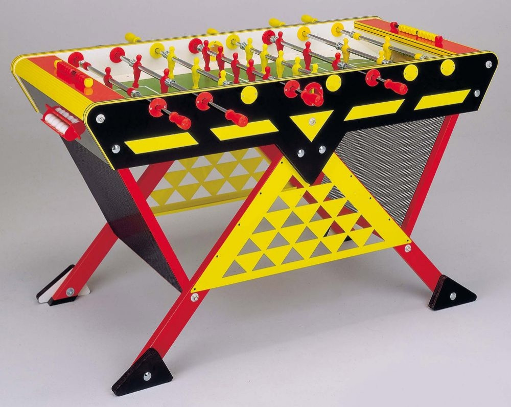 Garlando G-3000 Futura Fußballtisch mit Teleskopstangen – für Lieber der Extremheit: ein Produkt mit modernem, innovativem Äußerem in Welt der Fußballtische. In Rücksicht auf seine Erscheinung können wir keinen eindeutigen Stil nennen, in den dieser Kicker passt; er mag in irgendwelchem Umfeld aufgestellt werden. Der Tischkorpus ist professionellen Münzprüfer-Kickertischen ähnlich aus 30 mm dickem geschichtetem Tannenholz gefertigt; die äußere Schicht ist eine plastische laminierte Oberfläche. Die Kickerbeine sind aus Metall mit Pulverlackierung – mit einem speziellen Anstrich angelegt, der das Abplatzen verhindert. Die stabile Beinkonstruktion der Tischfußballvorrichtung ermöglicht, dass der Kicker so stabil auf seinen Füßen steht, wie Münzprüfer-Modelle. Die Stangen mit 16 mm Durchmesser sind aus Stahl gefertigt, mit Chrombezug, der vor allem vor Korrosion schützt. Sie laufen in Ringen mit Kugellagern, deren Vorhandensein das Spiel schneller macht, ohne dass das Handgelenk der Spieler angestrengt wird. Die Tischfußballvorrichtung wird mit 10 Stck. Standardbällen geliefert. Sie ist nach Anspruch mit 180- oder 360-Grad-drehenden Torwartfiguren zu bestellen. Es gilt 3 Jahre Garantie auf den Garlando G-3000 Fußballtisch. Das Spielfeld ist eine grüne laminierte Oberfläche mit weißen Markierungslinien. Das Produkt entspricht den EU-Sicherheitsvorschriften EN 71-1, EN 71-2 und EN 71-3.