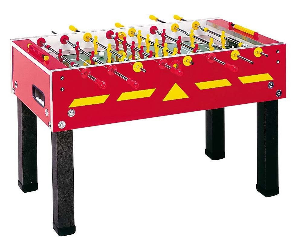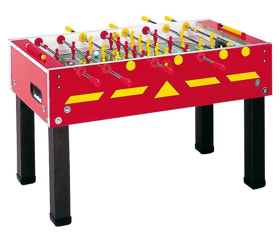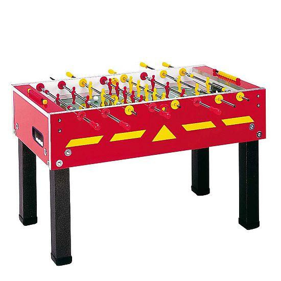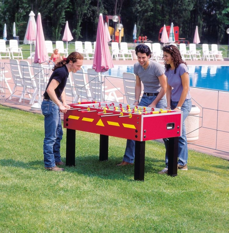 Garlando G-500W roter Fußballtisch für Außenverwendung: Der wetterfeste Fußballtisch, der Garlando G-500W ist aus speziellen Materialien gebaut. Der Tisch widersteht allen Wetterumständen. Wir empfehlen den Kickertisch sowohl für freizeitliche Heimverwendung als auch für offene Gastgewerbestätten bis Campingplätze sowie Freibad-Geländen. Der 30 mm dicke Tischkorpus ist aus geschichtetem Holzmaterial (sog. Schiffholz) gefertigt, der seine äußere Bedeckung völlig aus einem Kunststoff hat. Die Tischstruktur ist ganz und gar wasserfest, auch die Klebeflächen sind durch die Anwendung von wetterfestem Klebstoff konstruiert. Der Spieltisch ist mit rotem bzw. blauem Bezug (das zweite in Holzmuster) bestellbar. Die Tischbeine sind aus 9 x 9 cm dickem viereckigem Stahl gefertigt, der Anstrich an ihrer Oberfläche ist speziell, besonders abplatzfest. Die Stangen sind aus Stahl mit 16 mm Durchmesser gefertigt, ihre Oberfläche wird im Vergleich zu Innengeräten in dreifacher Dicke mit einer korrosionsfesten Schutzschicht aus Chrom überzogen. Das Spielfeld ist mit laminierter Oberfläche bedeckt und durch wetterfesten Klebstoff fixiert. Die Markierungslinien des Spielfeldes sind mit speziellem ausbleichfestem Anstrich gemalt. Die Kickerstangen laufen in Ringen mit Kugellagern, deren Vorhandensein das Spiel schneller macht, ohne dass das Handgelenk der Spieler angestrengt wird. Die Spielfiguren sind gelb-rot zum roten Spieltisch, der blaue Tisch hat aber weiß-blaue Figuren. Die Tischfußballvorrichtung wird mit 10 Stck. Standardbällen geliefert. Sie ist nach Anspruch mit 180- oder 360-Grad-drehenden Torwartfiguren zu bestellen. Es gilt 3 Jahre Garantie auf den Garlando G-500W Fußballtisch. Der Tischkorpus ist mit UV-resistenter Lackierung überzogen, die einen sogar in langer Zeit nicht bleichenden Farbton zum Vorteil hat. Zur Grundausführung des Kickertisches gehört eine wetterfeste Staubschutzplane. Das Produkt entspricht den EU-Sicherheitsvorschriften EN 71-1, EN 71-2 und EN 71-3. Nehmen Sie vor einem Kickertischkauf die Wahl dieses ausgezeichneten Qualitätskickers in Rücksicht! Garlando offener Fußballtisch für Außenverwendung Für Heimverwendung Ohne Münzprüfer In Rot sowie in Blau bestellbar Der Outdoor-Kicker widersteht allen Wetterumständen: die Stahlelemente sind gegen Verrostung behandelt – er kann als Outdoor-Spielgerät für Körperschaften, Schulen, Kindergärten eine perfekte Wahl sein. Wir empfehlen ihn für Freibad-Geländen und Campingplätze. 3-schichtiges MDF-Material mit laminierter Oberfläche, Klebeflächen mit wasserfestem Klebstoff; in Hinsicht auf die Normalgröße des Produkts ist es auch für Innenverwendung vortrefflich geeignet. 3 Jahre Garantie UV-resistent, seine Farbe bleicht nicht einmal bei nachhaltiger Verwendung aus. Torwartfiguren in 360- oder 180-Grad-drehender Ausführung wählbar Sowohl mit Teleskopstangen als auch mit normalen Stangen bestellbar. Eine Wetterschutzplane gehört zum Produkt!