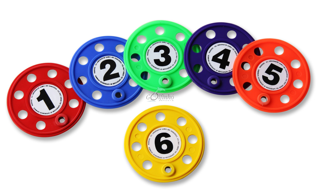 Golfinho Tauchscheiben mit 10 cm Durchmesser – nummeriertes 6-er Set: sie tauchen senkrecht im Wasser unter Details