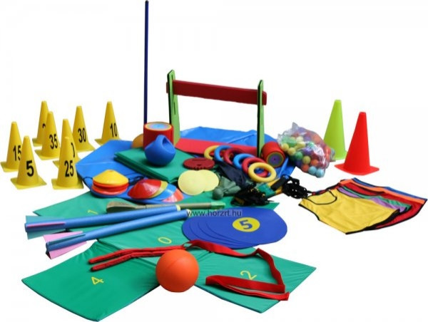 Die Packung der zum Kinderathletikprogramm nötigen Geräte ist eine Empfehlung der Gerätsauswahl anhand des Schulprogramms des ungarischen Leichtathletikverbandes und des IAAF für 6-12-jährige Kinder. Kinderathletik ist ein begünstigter Lehrstoff der Unterstufe geworden, und für ihren neuartigen Lehrplan werden Sportlehrkräfte und Grundschullehrer fortgesetzt methodisch sowie praktisch vorbereitet und weitergebildet. Die Verwirklichung des Programms – in den Alltag eingebaut – gibt Kindern und Lehrkräften gleichermaßen einen neuen Schwung und eine neue Sichtweise. Es hat als Vorteil, dass es ausgesprochen sicher ist, bzw. dass die physische-seelische-geistige Entwicklung ohne Verletzungen erreicht wird, und das Ergebnis ist Erfolgsorientiertheit, Mannschaftsgeist innerhalb von fördernden Rahmen, wo auch immer das stattfinden sollte. Geräte: 1.) Gerätehaltertasche mit Rädern (1 Stck.) 2.) 1 kg schwere Medizinbälle mit 20 cm Durchmesser (2 Stck.) 3.) 400 g schwerer athletischer Soft-Diskus mit Handgriff (1 Stck.) 4.) 300 g schwerer athletischer Soft-Diskus (1 Stck.) 5, Markierungskegel mit eckigen Sohlen, 39-40 cm (4 Stck.) 6.) Standfüße zum Trainingshilfeset (14 Stck.) 7.) 120 cm lange Trainingsstangen mit 2,5 cm Durchmesser (14 Stck.) 8.) Wurfbälle – 40-50 g (100 Stck.) 9.) 4 m langes Gummiseil (1 Stck.) 10.) Zusammenfaltbare Turnmatten 170x60 cm (4 Stck.) 11.) 6 m lange Koordinationsleiter (1 Stck.) 12.) Kinderhürden aus Polyethylenschaum (14 Stck.) 13.) 0,5 kg schwere Medizinbälle mit innerem Griff (2 Stck.) 14.) Nummerierter kreuzförmiger, faltbarer Springteppich (1 Stck.) 15.) Kometenbälle/Chiffon-Wurfsäckchen (2 Stck.) 16.) Hallenspeere aus Schaum (2 Stck.) 17.) Spezielles, 20 m langes Rollbandmaß aus PVC (1 Stck.) 18.) Spezielles, 50 m langes Rollbandmaß aus PVC (1 Stck.) 19.) 205 cm lange Stabhochsprungstäbe (2 Stck.) 20.) Zielscheiben zum Stabhochsprung, nummeriert (1 Set) 21.) Springseil (1 Stck.) 22.) Nummerierte Markierungshütchen (1 Set – 8 Stück) 23.) Markierungstellerset (40 Stck.) 24.) Farbige weiche Ringe, 18 cm (6 Stck.) 25.) Mannschaftswesten (48 Stck.) 26.) Anzeigetafel für die Wand (1 Stck.) 27.) Aufgabenblätter (1 Set)