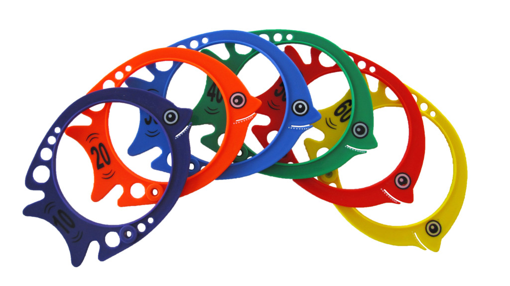 Nummeriertes Tauchringset – fischchenförmig, 6-er Serie untertauchende Unterwasserringe, 19x14 cm Größe Details
