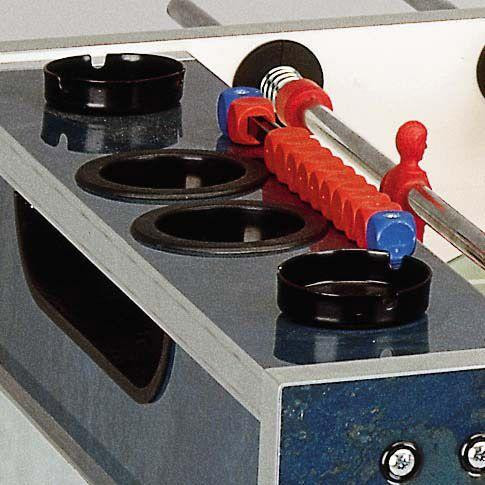Garlando Deluxe Outdoor Fußballtisch für draußen: Outdoor-Kicker – durch den ganzen Sommer wird Ihnen das vergnügliche Spiel im Freien gewährt… Dieser Kicker ist die Outdoor-Version der traditionellen Luxusausführung; er ist ganz und gar aus wasserfesten Materialien gefertigt. Der Tischkorpus ist aus 3,6 cm dicker geschichteter Fichtenholzplatte gefertigt und hat eine wasserfeste laminierte Oberfläche. An manchen Stellen hat der Tisch geklebte Flächen – das wurde in jedem Fall mit wetterfestem Klebstoff ausgeführt. Jedes der Metallteile ist wetterbeständig, meist mit Chrom überzogen. Wir empfehlen die Verwendung des Kickertisches für Freibad-Geländen, Campingplätze, Minigolfklubs, Schwimmbäder, und nicht zuletzt für offene Gastgewerbestätten. Der Betreiber kann in kurzer Zeit einen unglaublich großen Profit verschaffen, sogar während nur einer Sommerzeit. Die 16 mm Durchmesser Stangen sind 2,3 mm dick, aus kaltgerolltem Stahl (25NC6) mit hoher Zugfestigkeit (R = 100 kg x mm2) und einem Chrombezug, welcher im Vergleich zu Innenkickern eine dreifache Dicke hat. Das Modell ist mit durchgehenden Stangen sowie mit Teleskopstangen zu bestellen. Das Material des Spielfeldes ist im Fall von nicht herumdrehenden Torwartfiguren nicht glänzendes, auf 800 °C wärmebehandeltes Glas, im Fall von herumdrehenden Torwartfiguren ist es ein wetterfester laminierter Überzug. Der außer Gebrauch stehende Tisch kann vor der Sonnenstrahlung durch das Zubehör: die wetterfeste Abdeckplane geschützt werden. Es handelt sich hier um ein wirklich robustes Produkt, das eine hohe Qualität aufweist. Die Kickerbeine, gefertigt aus 9 x 9 cm dickem Stahl, sind mit besonders abplatzfestem Anstrich behandelt. Der Kicker wird mit 10 Stck. weißen Standardbällen geliefert. Eine Wetterschutzplane ist Zubehör zum Tisch.